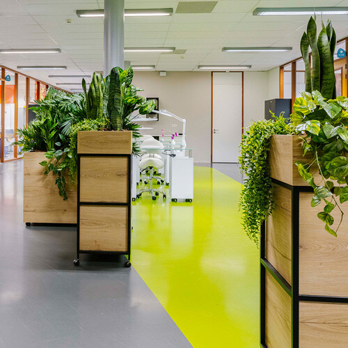 Aalsmeer en bloemen zijn onlosmakelijk met elkaar verbonden. Hoe tof is het dan voor een interieurstylist om een project te mogen uitvoeren waarbij werkplekken gerealiseerd moesten worden in een kas. Er kwamen veel zaken bij kijken: hoe ga je met de hoogte om? Hoe speel je met het licht? En hoe zorg je ervoor dat het geen kale ruimte wordt? Het is gelukt en blijkbaar vond de klant dat ook, aangezien we een half jaar later ook de andere helft van het pand mochten inrichten. We zijn heel trots op onze stylisten!
