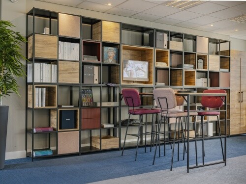 De Flexwall kent gewoonweg te veel mogelijkheden om op te noemen! Precies daarom is de kast zo geweldig om toe te passen. Bij het Spaarne College is de Flexwall toegepast als roomdivider en plantenbak. In onze showroom in Haarlem is de Flexwall toegepast als wandkast. Wij hebben hem gecombineerd met een monitor element en een hoge tafel met barkrukken. Ideaal voor korte werkoverleggen.