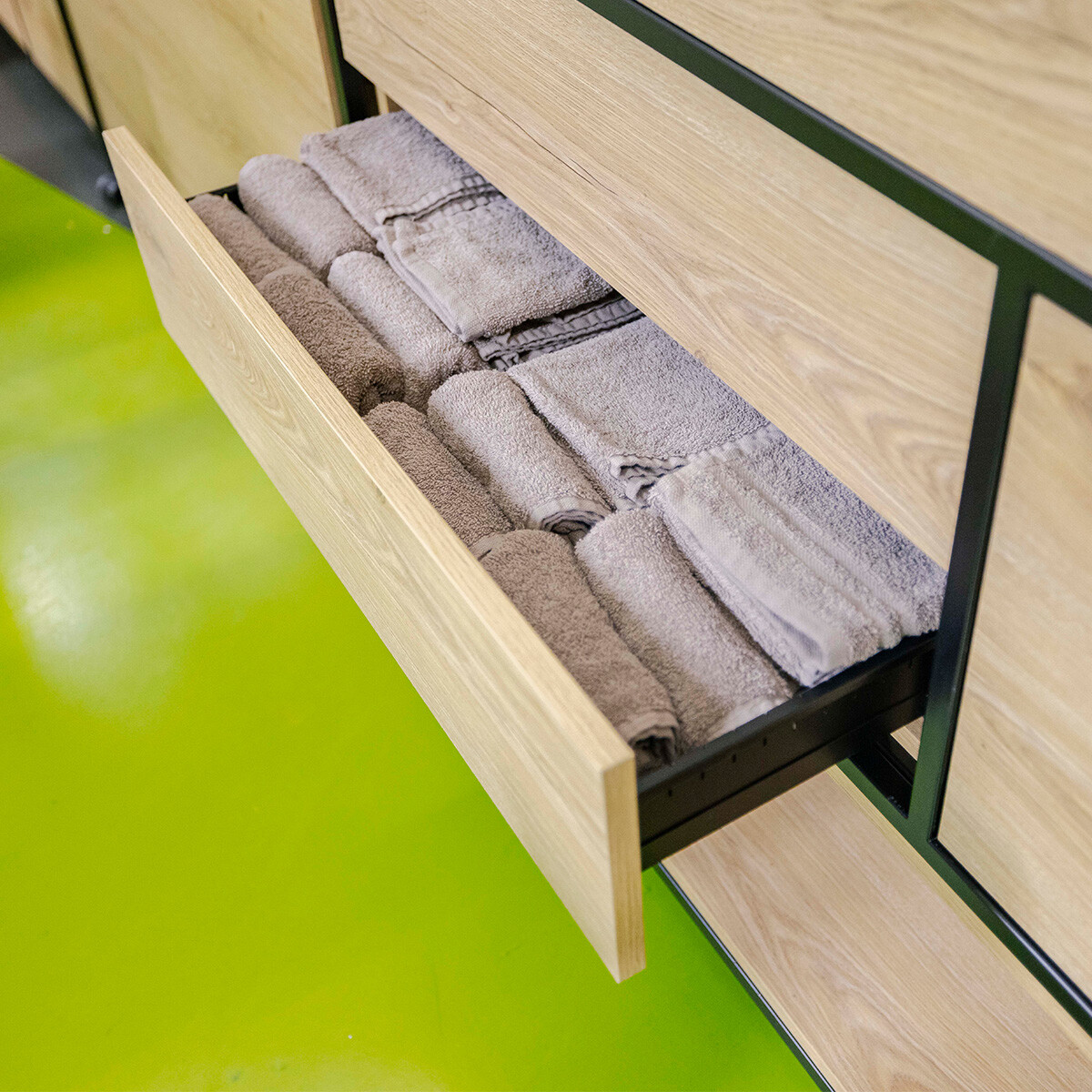 De vraag die wij per e-mail ontvingen was duidelijk; er was behoefte aan een extra afgeschermde praktijkruimte voor de nagelstylistenopleiding. Een verbouwing was geen optie en de ruimte moest ook grotendeels open blijven. Ze wilden planten, bergruimte én het moest flexibel en modulair zijn. Een hele wensenlijst, maar daar konden wij zeker wel wat mee! Ons Flexwall wandkastsysteem biedt namelijk geweldig veel mogelijkheden. Als (deels) open wandkast is het een decoratief pronkstuk voor iedere ruimte. Zoekt u vooral een praktische kast voor een meer opgeruimde ruimte, dan zijn er tal van lade- en kastdeurfrontjes beschikbaar. De kast biedt ook de mogelijkheid een plantenbak te integreren en wieltjes onder de kast te monteren. De Flexwall was dus zonder twijfel geschikt voor deze opdracht.