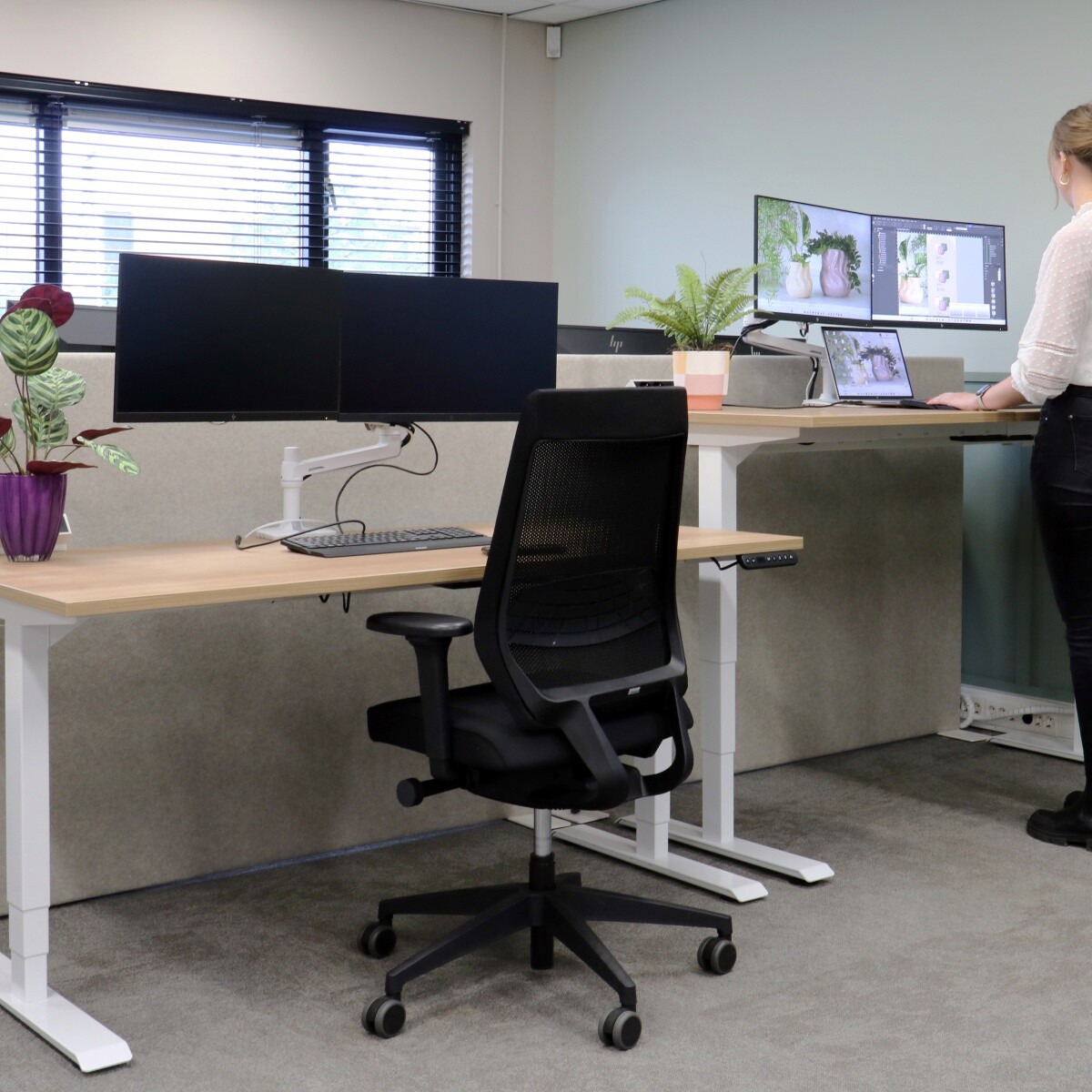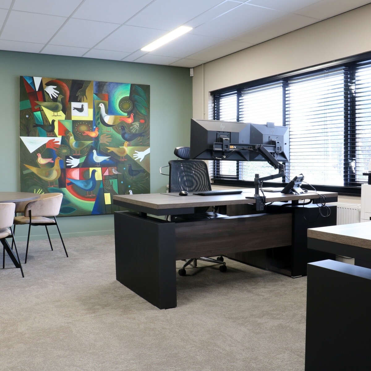 Er waren ook uitdagingen. Iets waar de eindklant én MENA stijlduo zich niet druk om hoefde te maken, omdat onze binnendienst die stress uit handen nam. Hoe kregen we alles op tijd bij de klant? Normaal verzamelen we bij grote projecten alles en brengen het in één levering. Dit geeft de minste onrust op de werkvloer van de klant. Dit project was redelijk last minute en enkele fabrikanten zijn in de zomer een paar weken gesloten. Het was een puzzel en we hebben in overleg met de klant besloten de levering toch op te splitsen in twee delen. De bureaus en bureaustoelen werden geleverd direct na oplevering van het pand. Sabine: “Leveringen opsplitsen heeft bij grote projecten niet onze voorkeur, maar we handelen altijd in het belang van de klant. Up and running in de zomer was de vraag. Dat is gelukt!”.